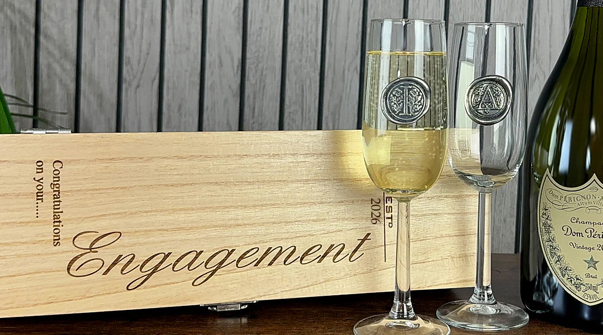 Our fabulous collection of luxury personalised engagement gifts are perfect for those looking for that unique gift for a special couple on their big day. From personalised Champagne, to stunning champagne glasses, we’re sure you will find that unique keepsake gift for them. We also offer the option to have any of our fabulous items personalised with the option of engraving, to make your gift extra special and personal.