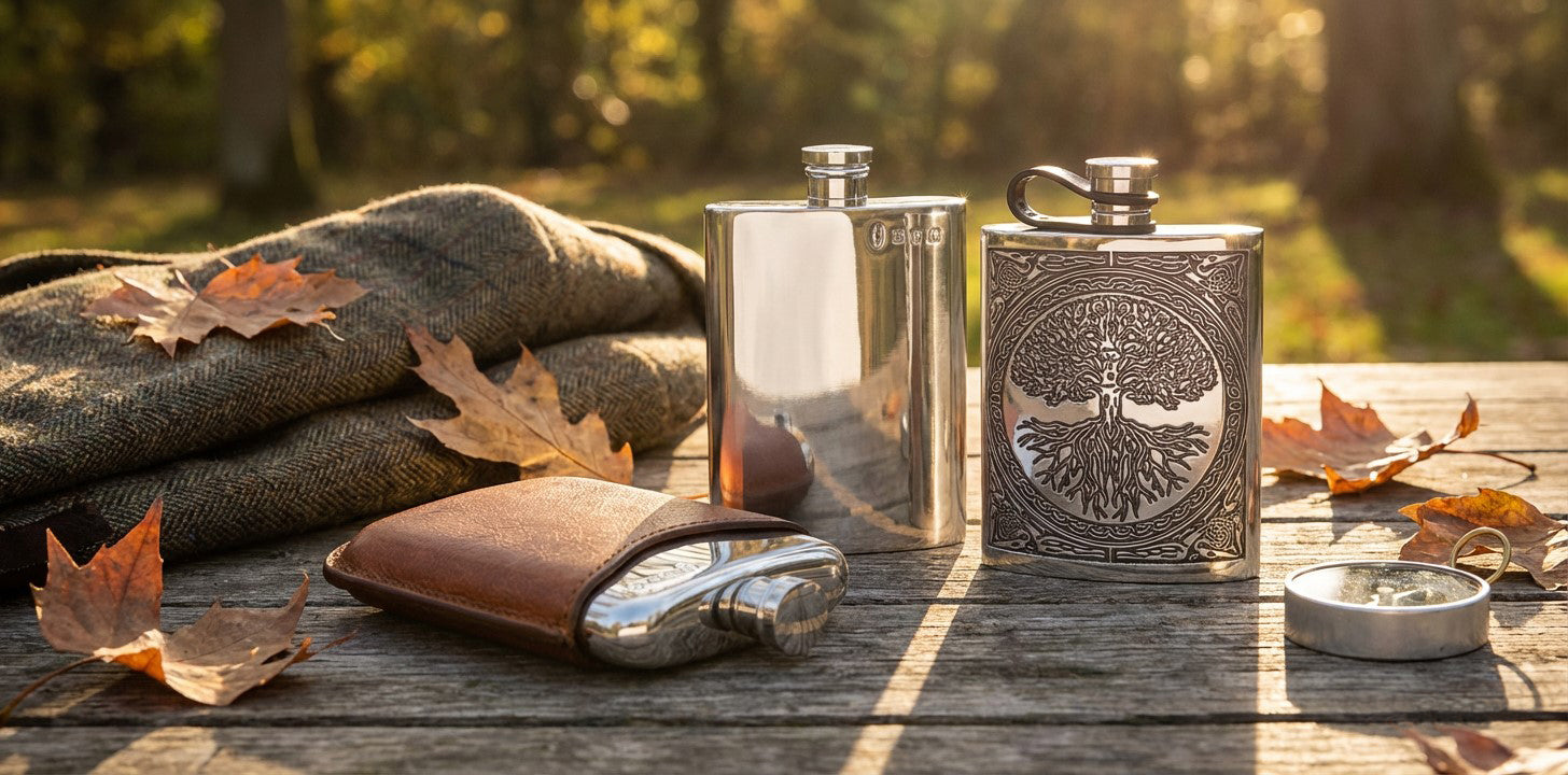 Our unrivalled collection of luxury pewter hip flasks provides us with possibly the largest selection anywhere in the World! With a variety of shapes, sizes and patterns to choose from, you can be assured that we have every possible pastime, interest and style fully covered. With a range of sizes including 2oz, 3oz, 4oz, 5oz, 6oz, 7oz & 8oz, and in a range of styles from captive top to Celtic, from leather covered to designer, we are sure to have the hip-flask for you. All of our hip flasks are handcrafted from the highest quality lead-free pewter and manufactured right here at our factory in Sheffield, England. We also offer the option of personalising your flask with custom engraving to make your gift extra special and personal. Elegantly packaged in our luxury presentation box complete with funnel which makes pouring your favourite alcoholic tipple even easier.