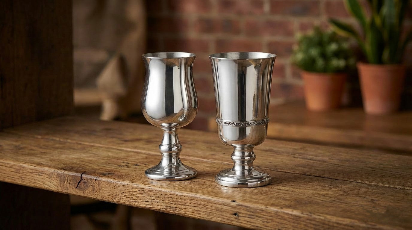 Our fabulous range of pewter wine and beer goblets are inspired by a range of themes from yesteryear including Celtic, Gothic, Medieval, and Viking eras. Available in a range of shapes and sizes and perfect for holding your favourite tipple, there is something for everyone from the Lord of the Rings and Game of Thrones fans, to those who just prefers stylish barware. All of our chalices are handcrafted from the highest quality lead-free pewter and manufactured right here at our factory in Sheffield. We also offer the option of personalising your goblet with custom engraving to make your gift extra special and personal. Lovingly packaged in our elegant presentation box complete with velvet gift bag.